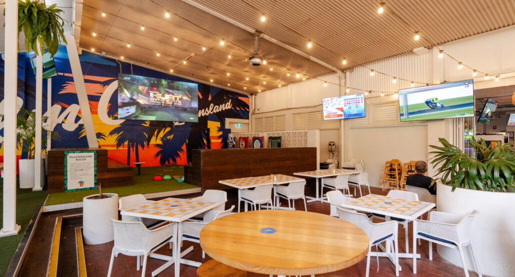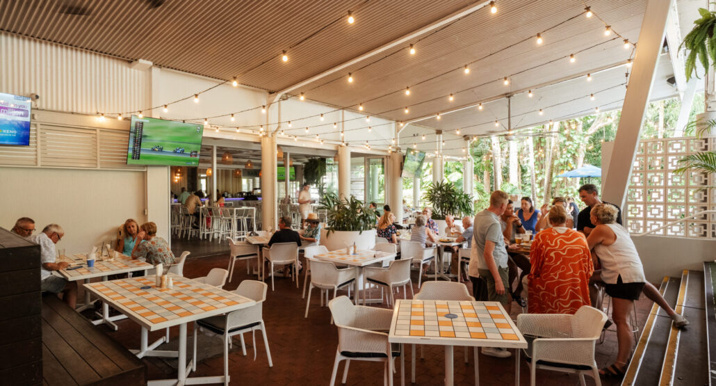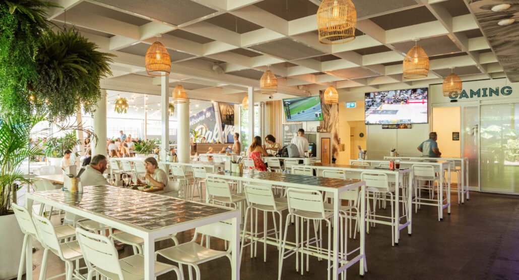 Located conveniently between the sports bar and the main dining area, this stylish space is ideal for socialising with friends or enjoying a refreshing break from the outdoors. With its cool, inviting ambiance and proximity to the energy of the bar and dining areas, it’s the perfect spot to relax, mingle, and take refuge from the heat while still being part of the vibrant atmosphere.